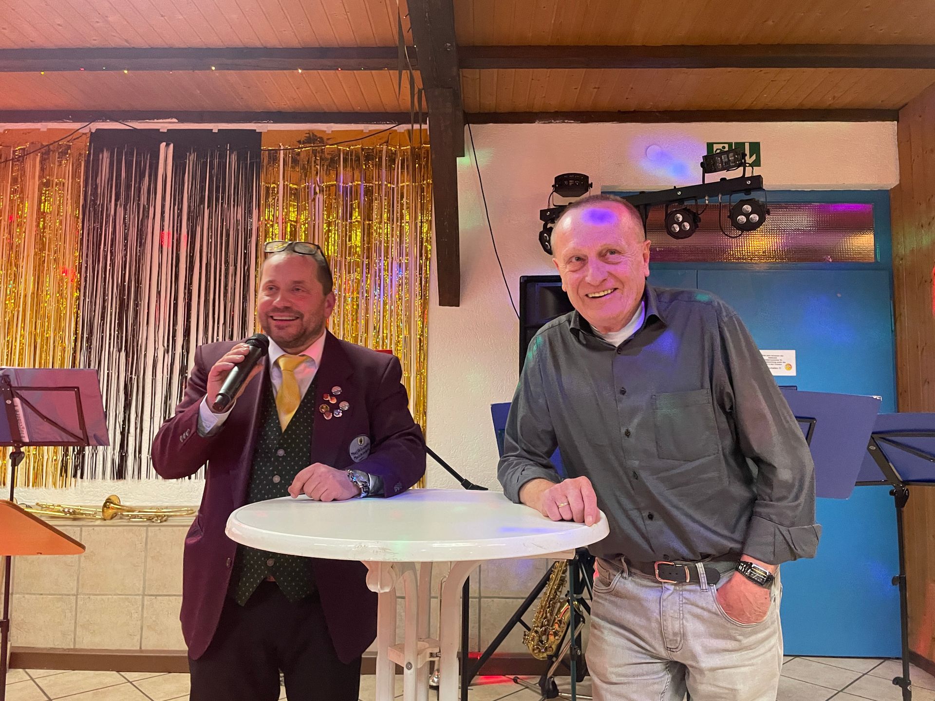 Gerhard Weißenböck, Ehrenvorsitzender des Blasmusikverbandes Baden-Württemberg / Kreisverband Böblingen berichtete in seinem Grußwort von einem unvergesslichen Polterabend, der er 1972 zusammen mit seiner Frau Elvira im Bockstall gefeiert habe.