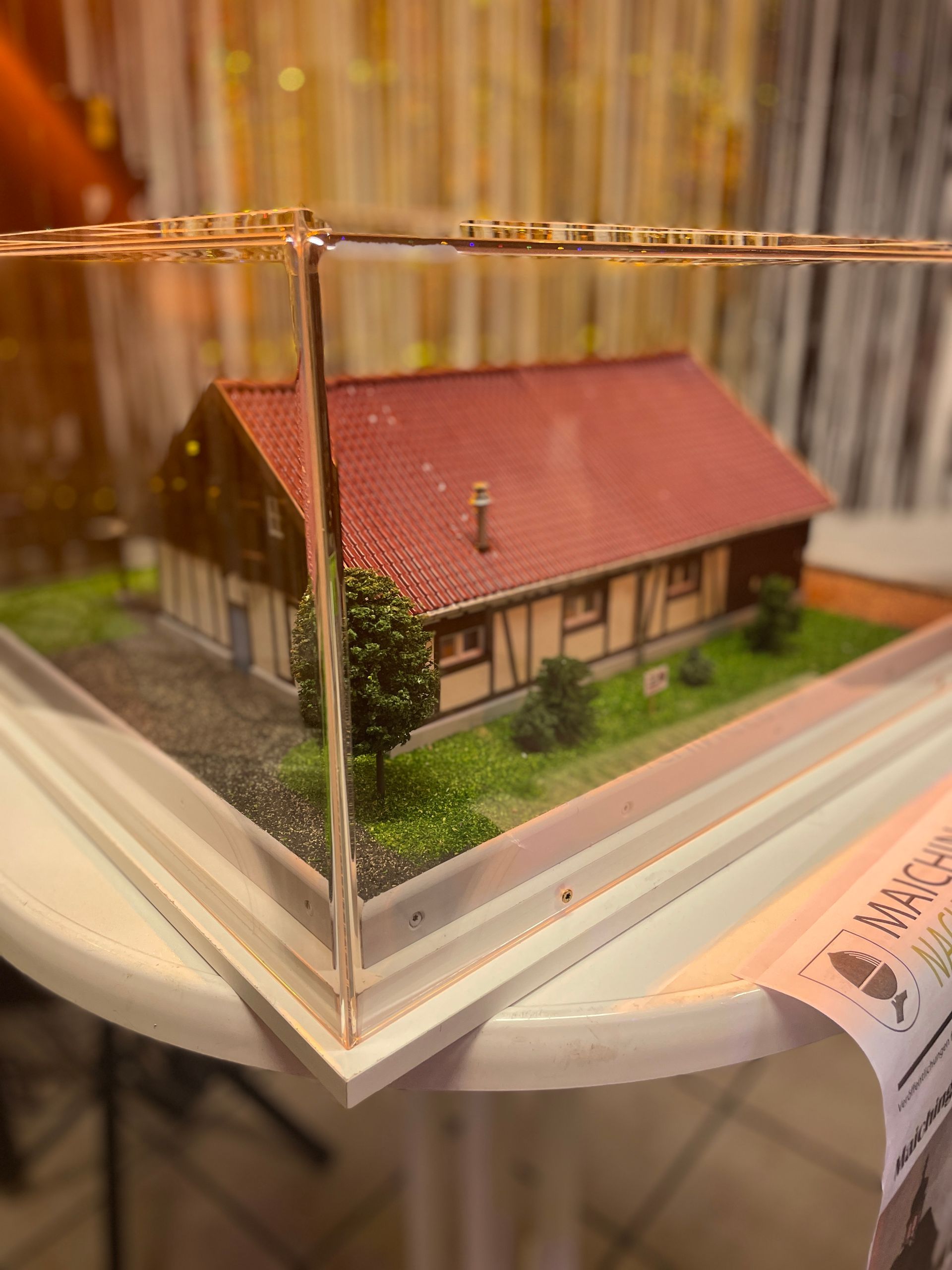 Das Model wird künftig im neuen Maichinger Vereinshaus ausgestellt und soll an die Historie des Fachwerkhauses und seine Bedeutung für das Vereinsleben der MKM erinnern.