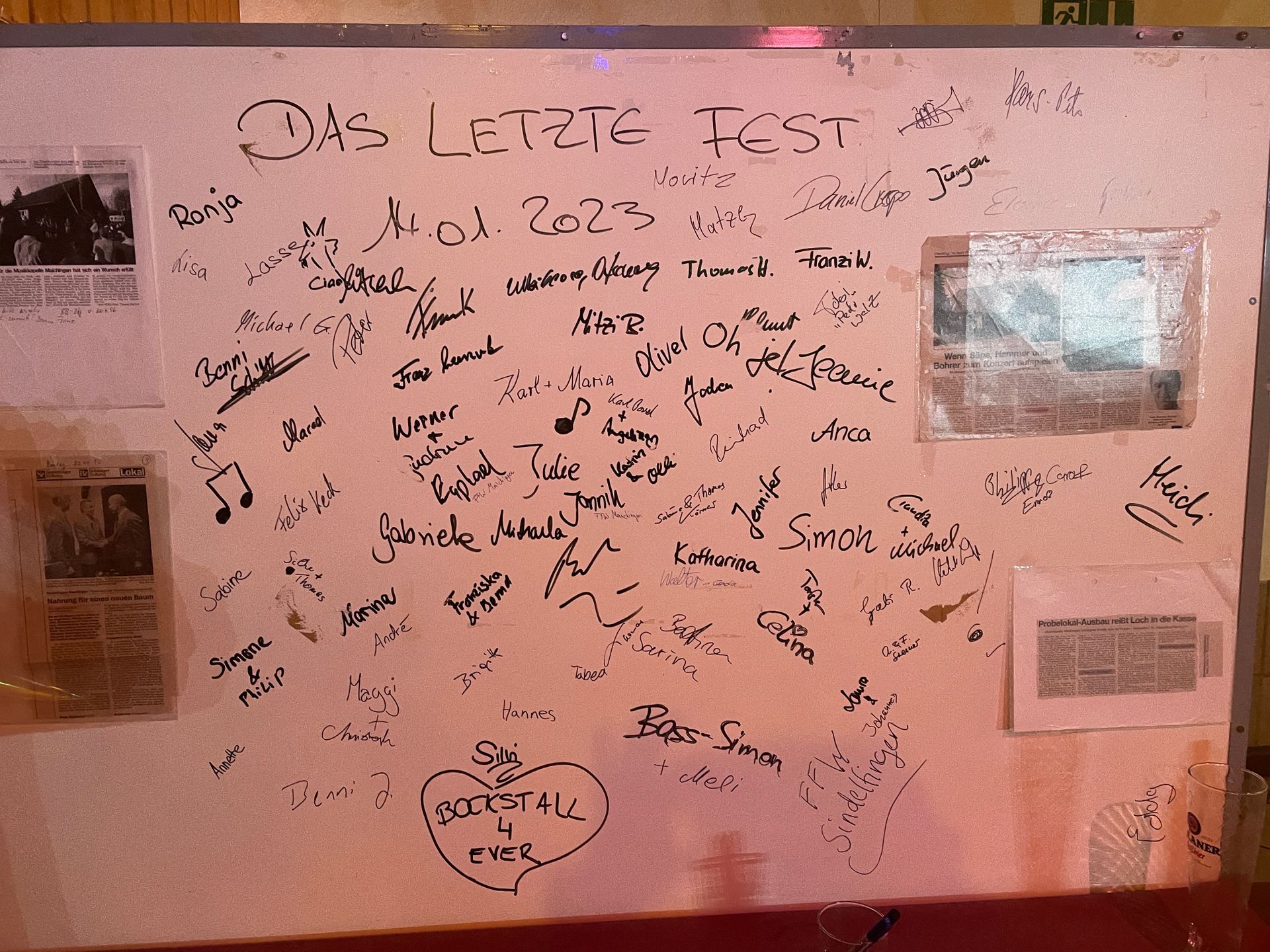 Im Anschluss an den offiziellen Teil erfolgte dann das, wofür der Bockstall bekannt ist. Mit einem rauschenden Fest mit leckerem Essen, Barbetrieb und viel Musik erlebte das in die Jahre gekommene Gebäude einen letzten Glanz. Bereits am Dienstag findet die erste Probe im neuen Maichinger Vereinshaus statt, der Umzug des gesamten MKM-Inventars erfolgt in den nächsten Wochen.