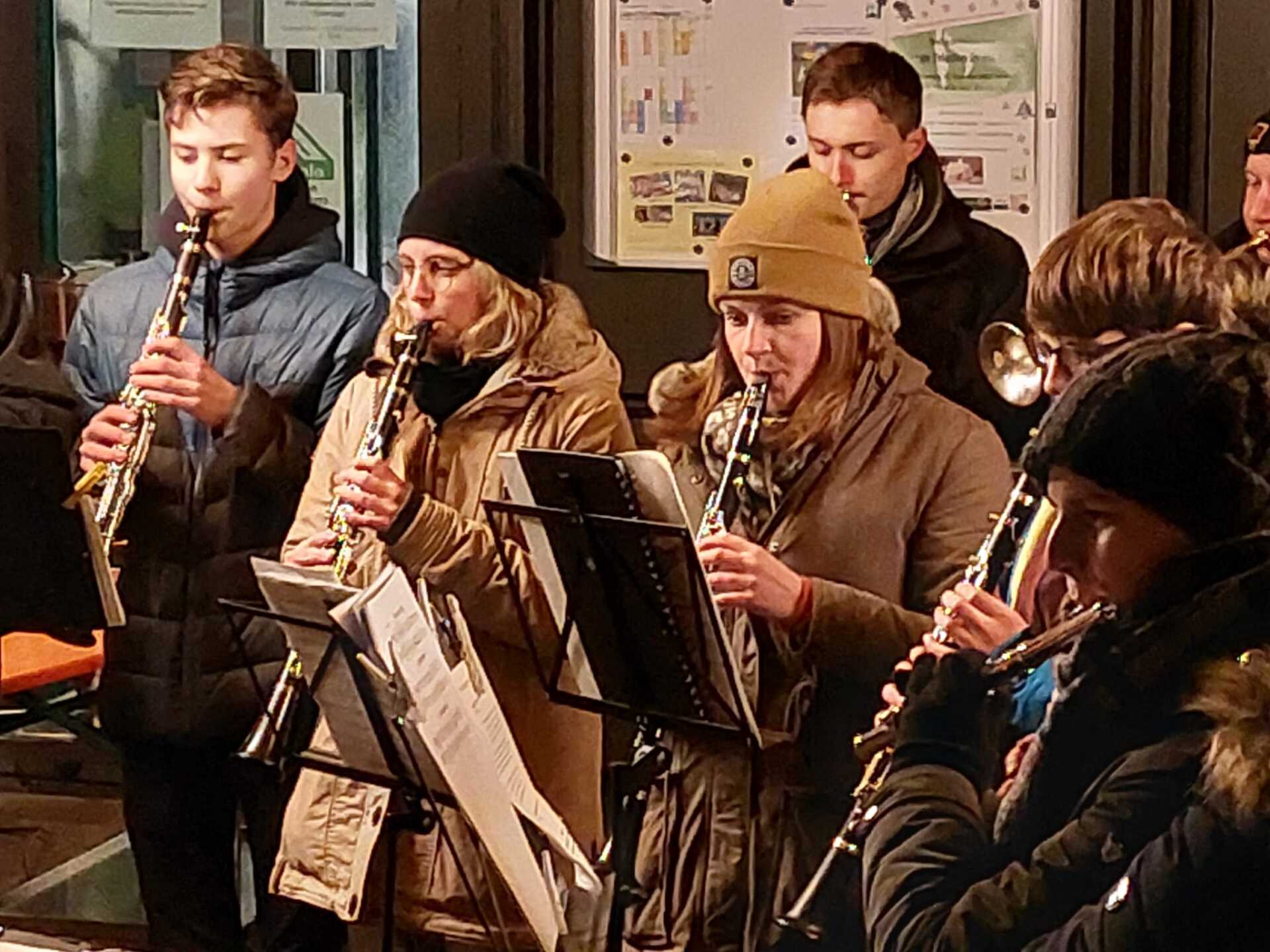Dirigentin Doreen Schneider hatte hierbei mit Titeln wie White Christmas und Schneeglöckchen auf altbekanntes gesetzt, was bei den zahlreichen Zuhörern bestens ankam. Eine nette Weihnachtsgeschichte rund um das Thema „Engel“ rundete ein wirklich gelungenes Adventsfenster ab. Und wer dachte, dass der Abend nach Musik und Lesung schon zu Ende sei, wurde eines besseren belehrt, denn bei Glühwein, Punsch und süßen Leckereien konnten die zahlreichen Besucher die winterliche Kulisse rund ums Bürgerhaus genießen und miteinander plaudern.